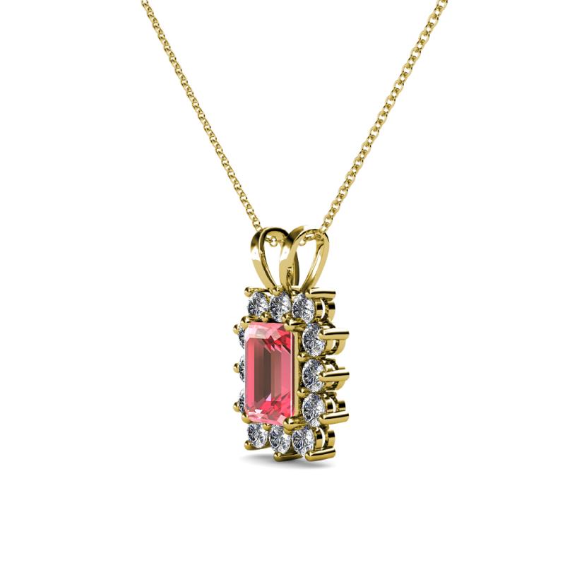 Emerald Cut (6x4 mm) Pink Tourmaline and Diamond Womens Halo Pendant Necklace 0.74 ctw 14K Yellow Gold.Included 18 Inches 14K Yellow Gold Chain More Details ...