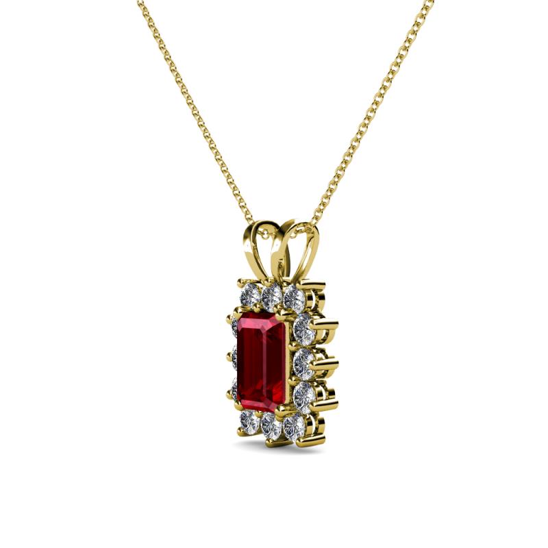 Emerald Cut (6x4 mm) Ruby and Diamond Womens Halo Pendant Necklace 0.82 ctw 14K Yellow Gold.Included 18 Inches 14K Yellow Gold Chain More Details ...