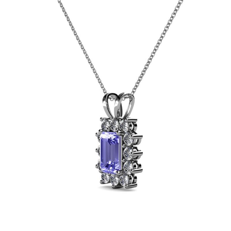 Emerald Cut (6x4 mm) Tanzanite and Diamond Womens Halo Pendant Necklace 0.79 ctw 14K White Gold.Included 18 Inches 14K White Gold Chain More Details ...
