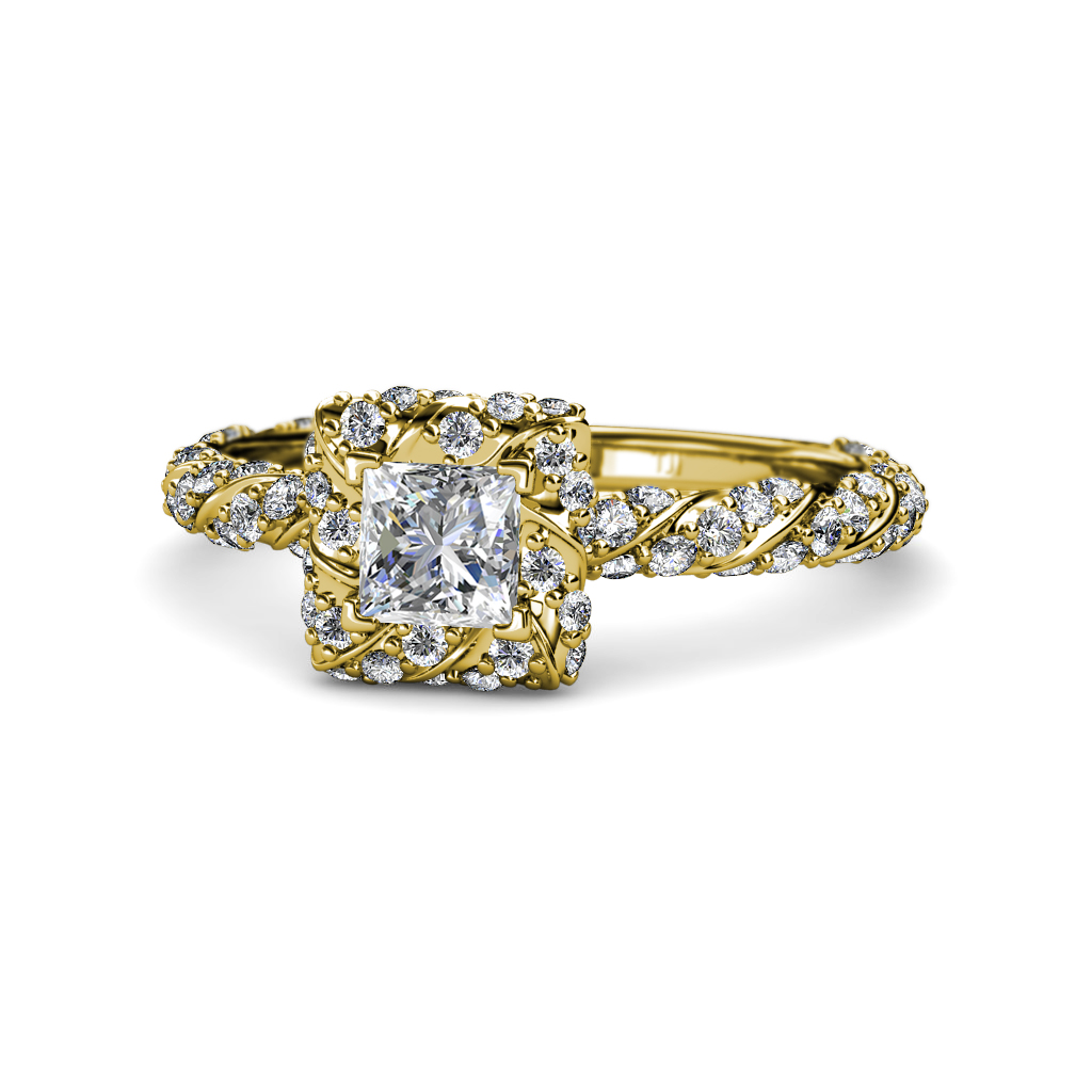 Diamond Four Prong Semi Mount Womens Halo Engagement Ring Setting 0.79 ctw 14K Yellow Gold More Details ...