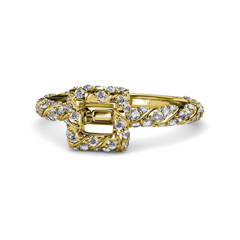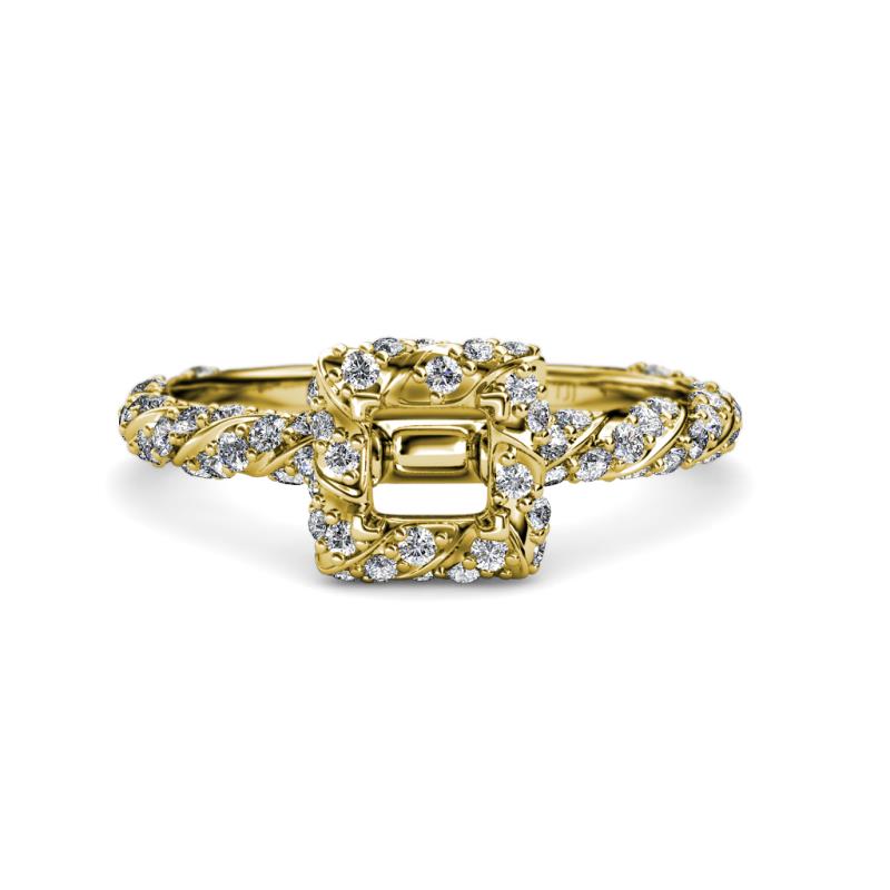Express Your love and ask her to be yours forever with this exquisite Semi Mount Halo Engagement Ring featuring Center 4 Prong Head with Halo of single row Pave Set Diamonds overlapping by swirl rope single row Pave Shank.
