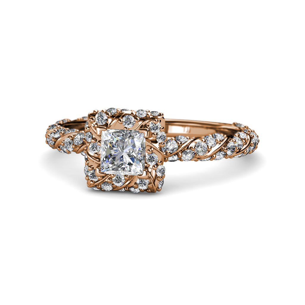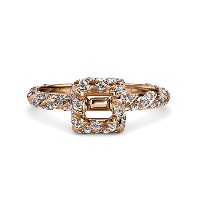 Diamond Four Prong Semi Mount Womens Halo Engagement Ring Setting 0.79 ctw 14K Rose Gold More Details ...