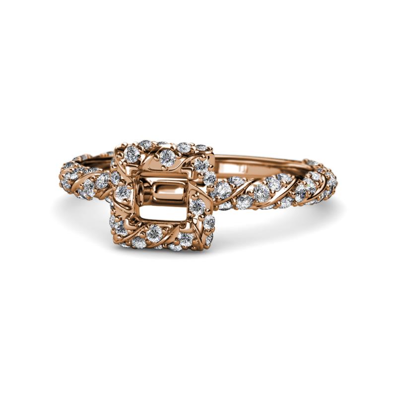 Express Your love and ask her to be yours forever with this exquisite Semi Mount Halo Engagement Ring featuring Center 4 Prong Head with Halo of single row Pave Set Diamonds overlapping by swirl rope single row Pave Shank.