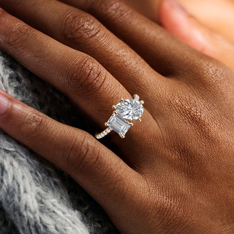 GIA Certified Pear Diamond and IGI Certified Emerald Cut Lab Grown Diamond 3.02 ctw Eight Prong Women 2 Stone Duo Engagement Ring 14K Rose Gold More Details ...