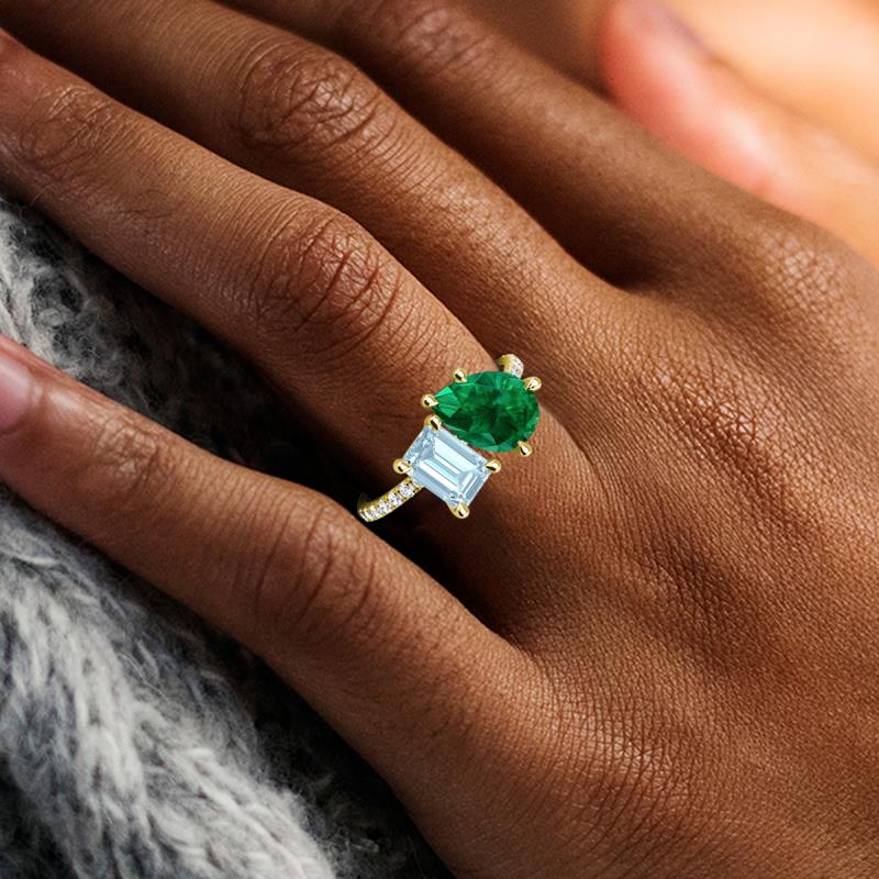 Pear Emerald and Emerald Cut Aquamarine 3.42 ctw Eight Prong Womens 2 Stone Duo Engagement Ring 14K Yellow Gold More Details ...