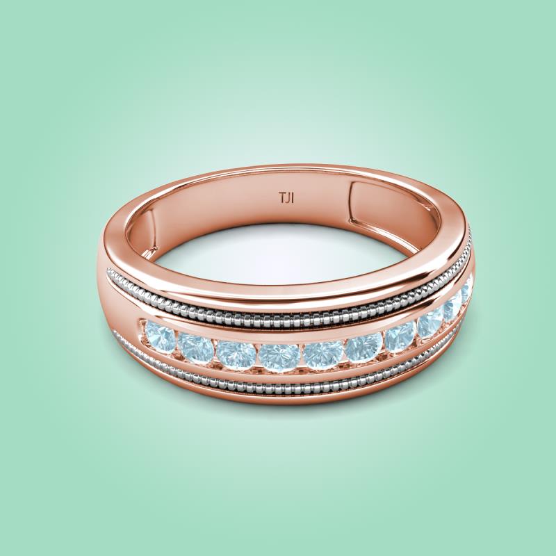 0.35 ctw Round Aquamarine (2.40 mm) Two Toned and High Polished Edges Men Wedding Band in 10K Rose Gold More Details ...