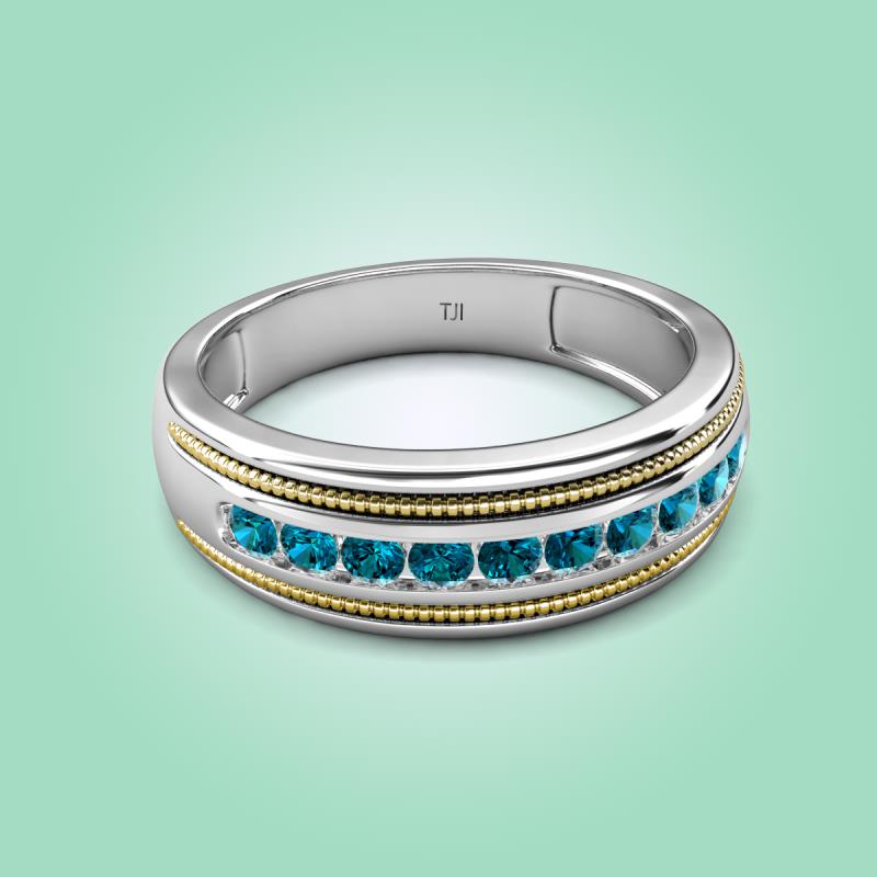 This two toned style with high polished finished edges with twisted wire effect is the best wedding band of 0.50 ctw and Round Blue Diamond set in a Channel setting.