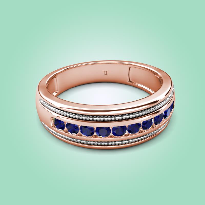 0.55 ctw Round Blue Sapphire (2.40 mm) Two Toned and High Polished Edges Men Wedding Band in 18K Rose Gold More Details ...