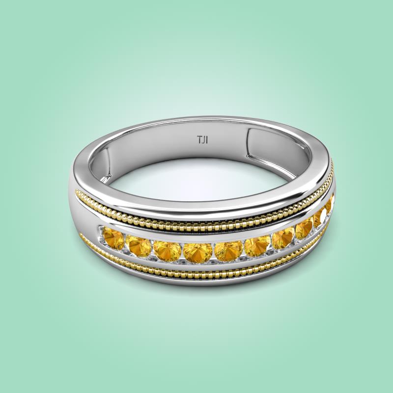 This two toned style with high polished finished edges with twisted wire effect is the best wedding band of 0.35 ctw and Round Citrine set in a Channel setting.