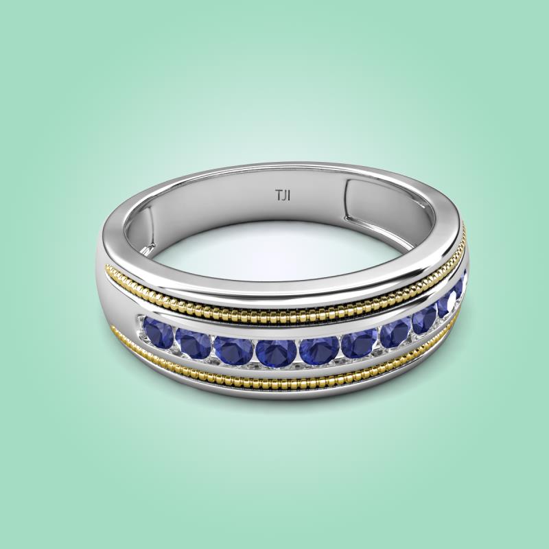 This two toned style with high polished finished edges with twisted wire effect is the best wedding band of 0.35 ctw and Round Iolite set in a Channel setting.