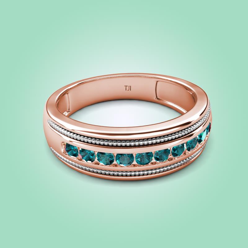 0.50 ctw Round London Blue Topaz (2.40 mm) Two Toned and High Polished Edges Men Wedding Band in 10K Rose Gold More Details ...