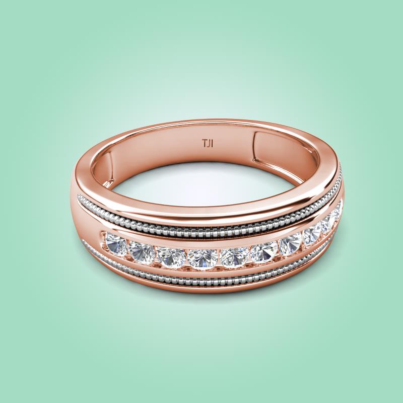 0.45 ctw Round Moissanite (2.40 mm) Two Toned and High Polished Edges Men Wedding Band in 10K Rose Gold More Details ...