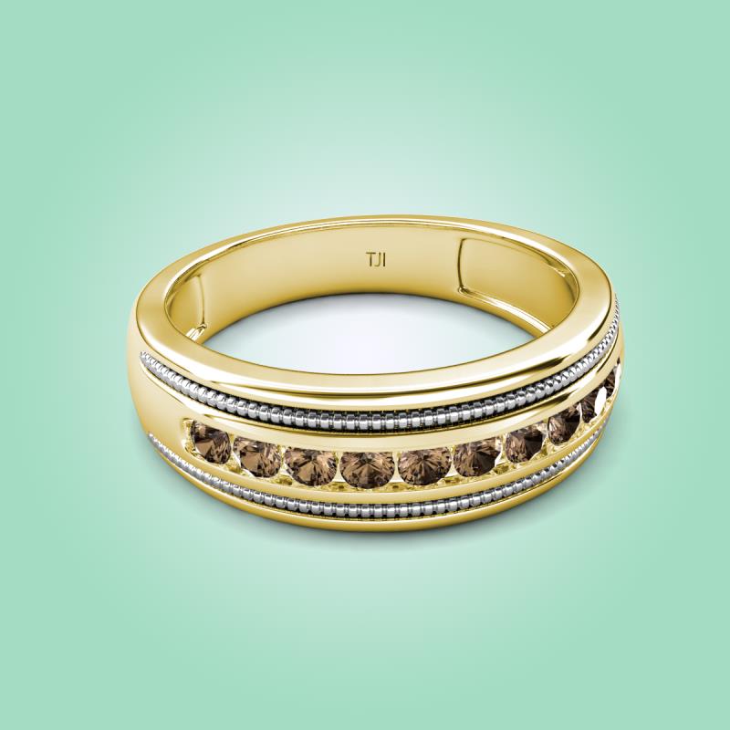 0.50 ctw Round Smoky Quartz (2.40 mm) Two Toned and High Polished Edges Men Wedding Band in 14K Yellow Gold More Details ...