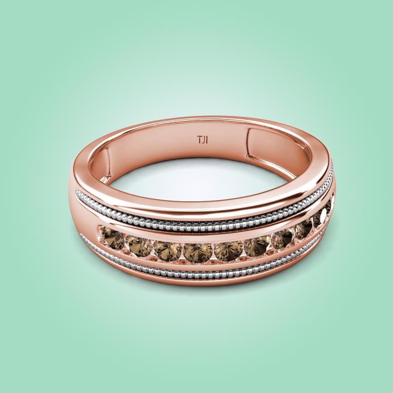 0.50 ctw Round Smoky Quartz (2.40 mm) Two Toned and High Polished Edges Men Wedding Band in 10K Rose Gold More Details ...