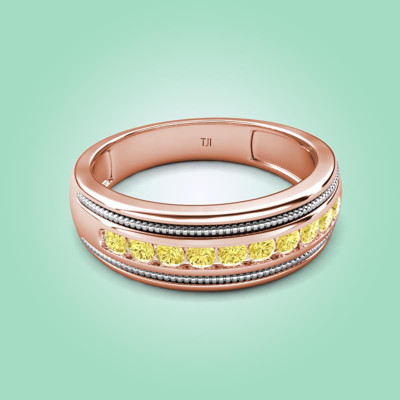 0.55 ctw Round Yellow Sapphire (2.40 mm) Two Toned and High Polished Edges Men Wedding Band in 10K Rose Gold More Details ...
