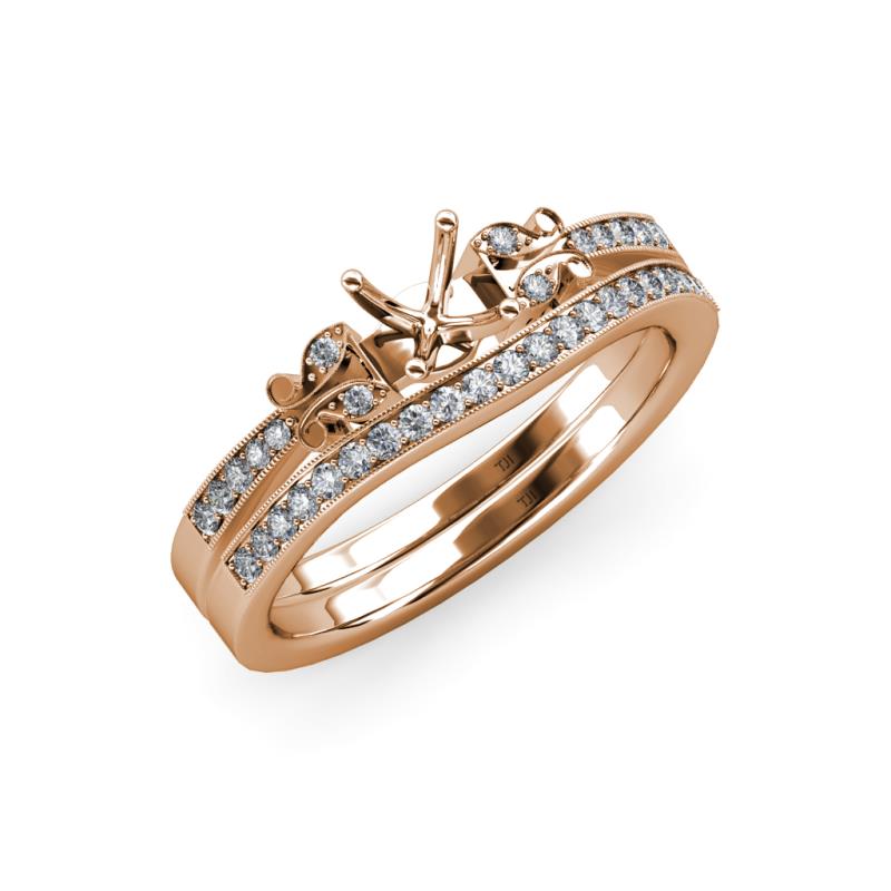 Diamond Four Prong Semi Mount Butterfly Engagement Ring Setting & Matching Diamond Band with Milgrain Work 0.27 ctw 14K Rose Gold More Details ...