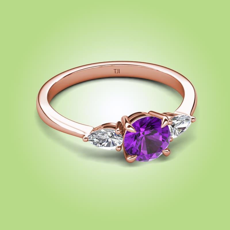 1.21 ctw Amethyst (6.00 mm) and Pear Shape Lab Grown Diamond Women Three Stone Engagement Ring in 14K Rose Gold More Details ...
