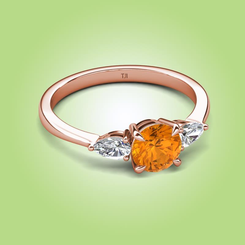 1.21 ctw Citrine (6.00 mm) and Pear Shape Lab Grown Diamond Women Three Stone Engagement Ring in 18K Rose Gold More Details ...