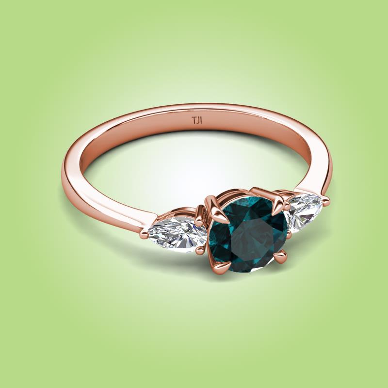 1.29 ctw London Blue Topaz (6.00 mm) and Pear Shape Lab Grown Diamond Women Three Stone Engagement Ring in 14K Rose Gold More Details ...