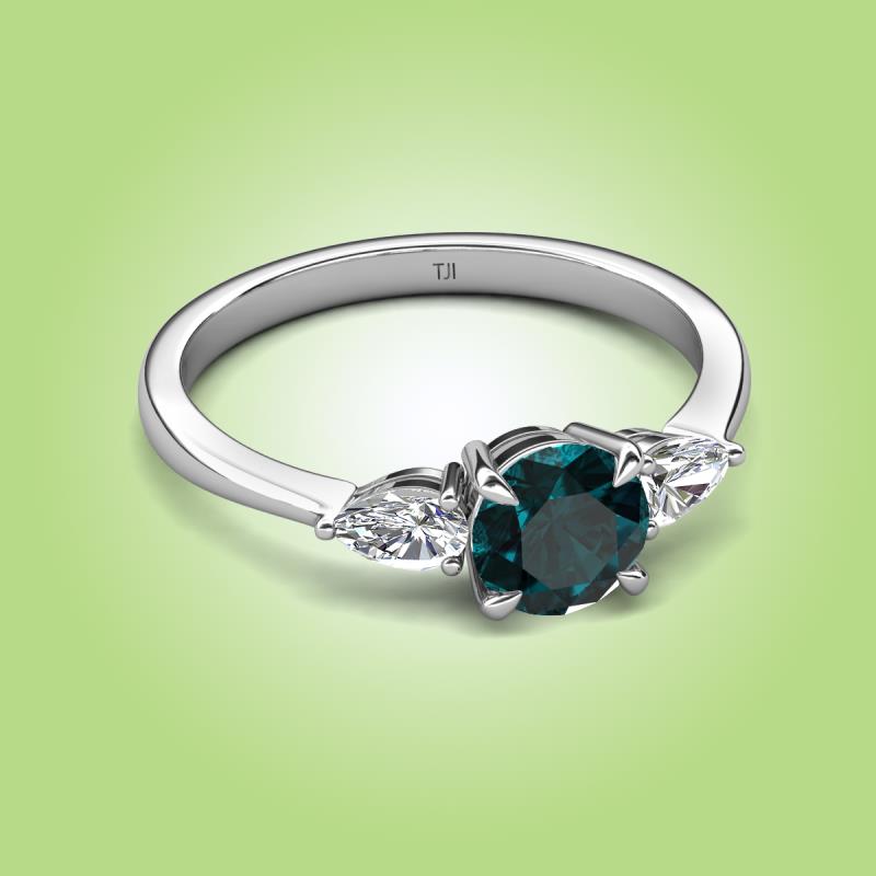 As a symbol of the beautiful journey, with this Three Stone Engagement Ring of 1.29 ctw with centre Round London Blue Topaz and side Pear shape Lab Grown Diamond that two people embark upon when they decide to spend their lives together.
