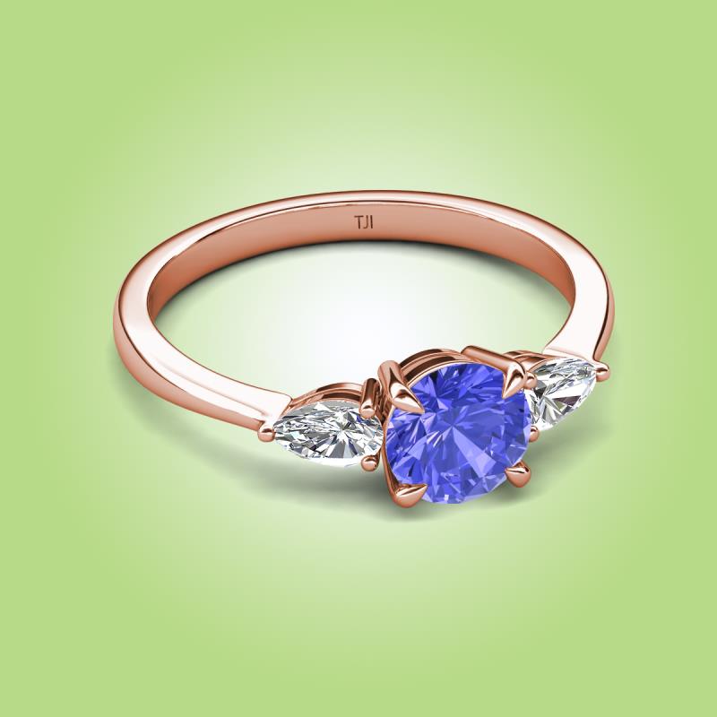 1.26 ctw Tanzanite (6.00 mm) and Pear Shape Lab Grown Diamond Women Three Stone Engagement Ring in 14K Rose Gold More Details ...