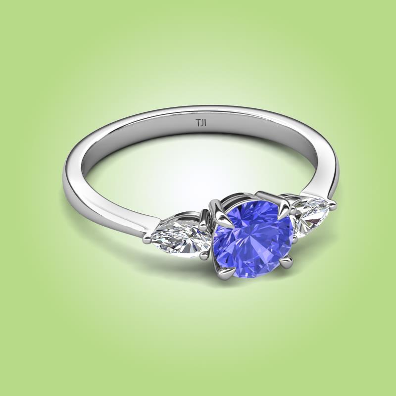 As a symbol of the beautiful journey, with this Three Stone Engagement Ring of 1.26 ctw with centre Round Tanzanite and side Pear shape Lab Grown Diamond that two people embark upon when they decide to spend their lives together.