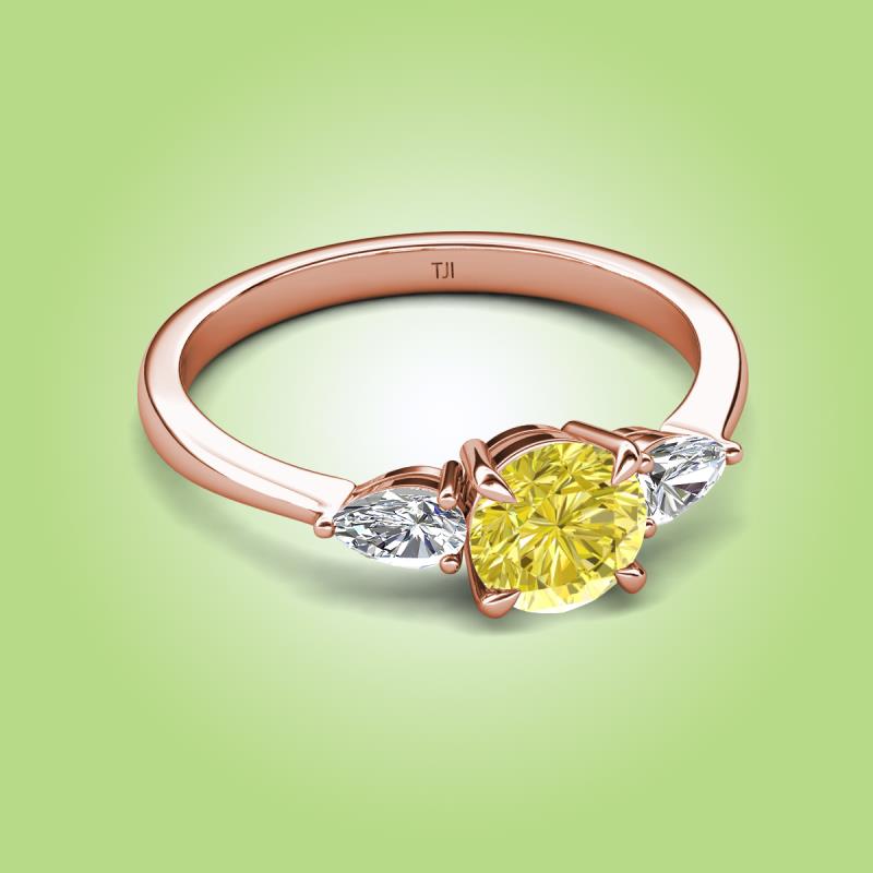 1.14 ctw Yellow Diamond (6.00 mm) and Pear Shape Lab Grown Diamond Women Three Stone Engagement Ring in 14K Rose Gold More Details ...