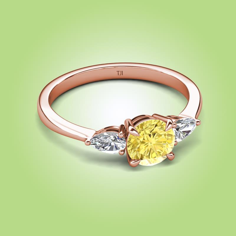 1.29 ctw Yellow Sapphire (6.00 mm) and Pear Shape Lab Grown Diamond Women Three Stone Engagement Ring in 14K Rose Gold More Details ...