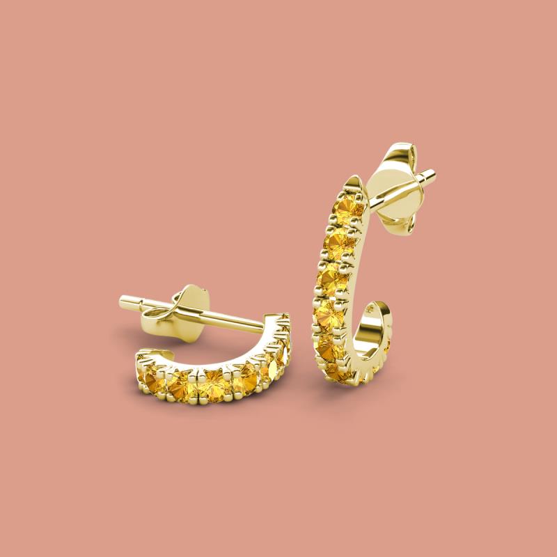 Round Citrine 0.31 ctw Womens Huggie with U Cut Pave Setting Half Hoop Huggie Earrings 14K Yellow Gold More Details ...