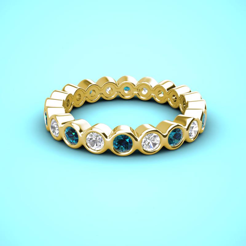 There's something about this stunning eternity band that feels incredibly romantic. This eye-catching piece is ornamented with striking Bezel set Blue Diamond and White Lab Grown Diamond embellised all the way around the shank. *As per ring size the stone and carat total weight changes.