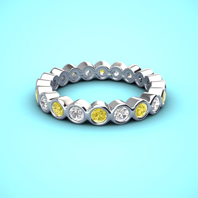 There's something about this stunning eternity band that feels incredibly romantic. This eye-catching piece is ornamented with striking Bezel set Yellow Diamond and White Lab Grown Diamond embellised all the way around the shank. *As per ring size the stone and carat total weight changes.