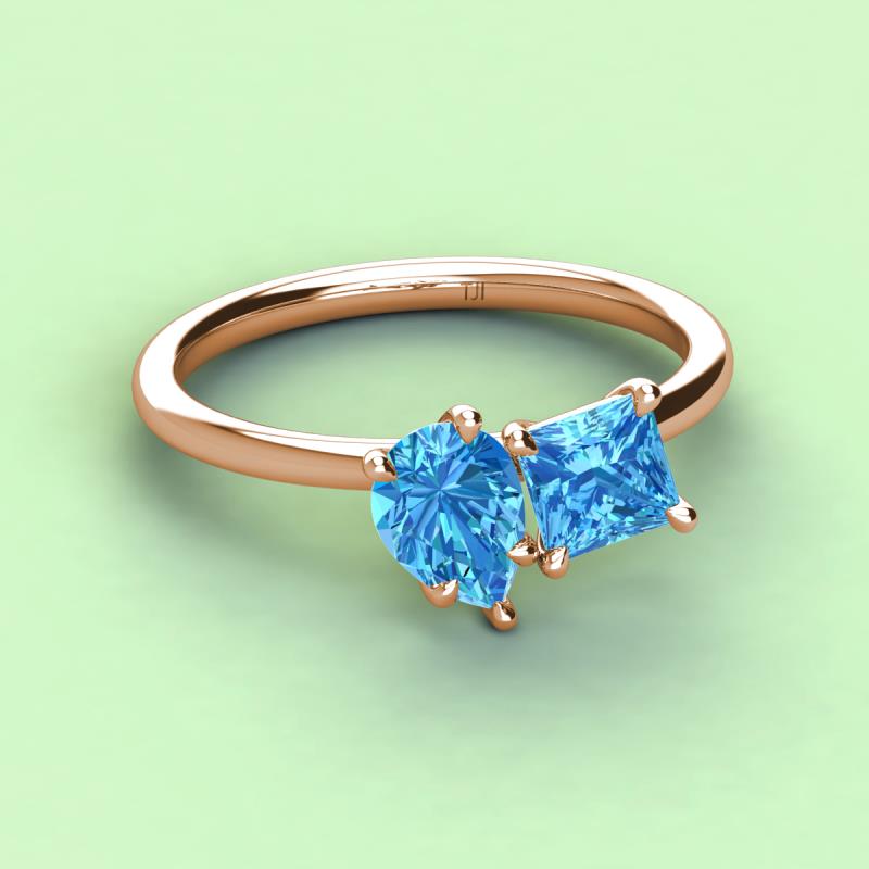 A beautiful symbol of everlasting love, this duo two-stone ring showcases a pair of Pear Shape Blue Topaz shimmering alongside of a luminous Princess Shape Blue Topaz crafted beautifully that represents two of you together.