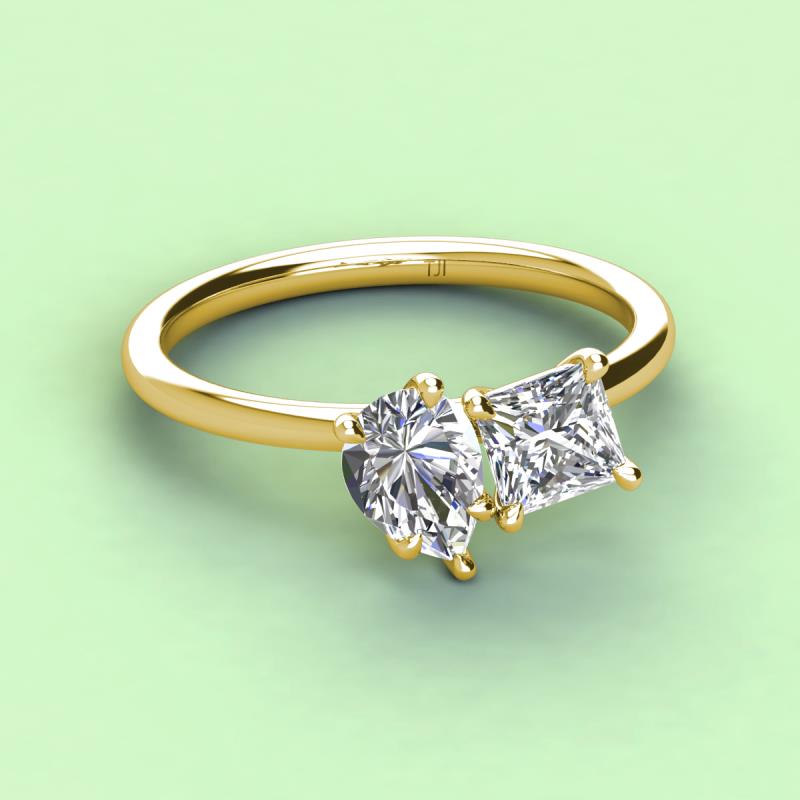 Pear & Princess Shape Forever Brilliant Moissanite 2.48 ctw Four Prong Womens 2 Stone Duo Engagement Ring 14K Yellow Gold More Details ...