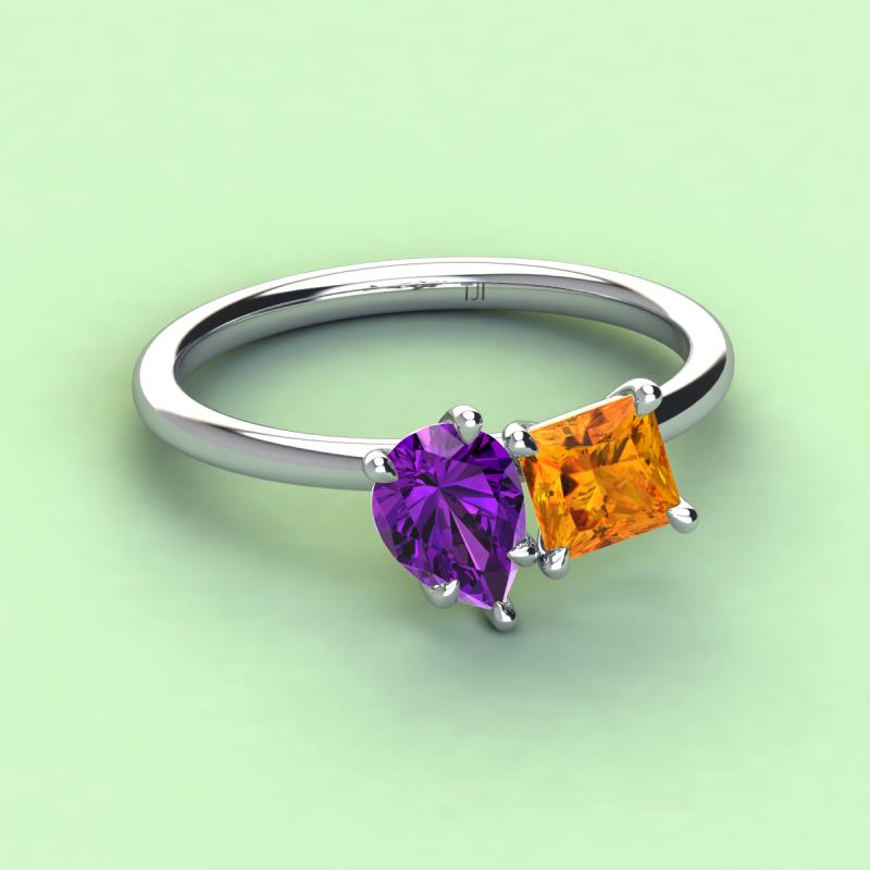 Pear Shape Amethyst & Princess Shape Citrine 2.15 ctw Four Prong Womens 2 Stone Duo Engagement Ring 18K White Gold More Details ...