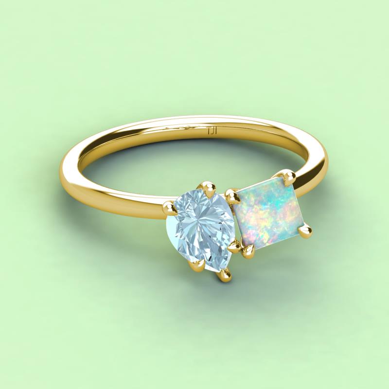Pear Shape Aquamarine & Princess Shape Lab Created Opal 2.00 ctw Four Prong Womens 2 Stone Duo Engagement Ring 10K Yellow Gold More Details ...