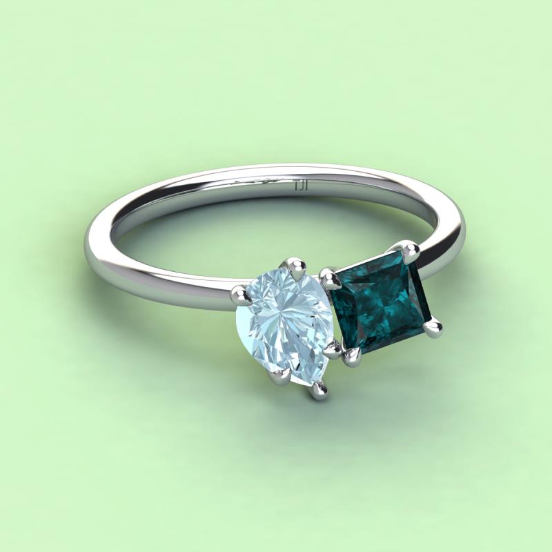 Pear Shape Aquamarine & Princess Shape London Blue Topaz 2.60 ctw Four Prong Womens 2 Stone Duo Engagement Ring 10K White Gold More Details ...