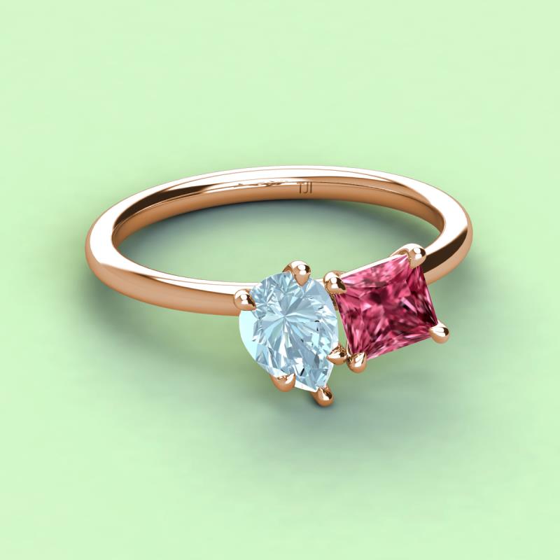 Pear Shape Aquamarine & Princess Shape Pink Tourmaline 2.25 ctw Four Prong Womens 2 Stone Duo Engagement Ring 18K Rose Gold More Details ...