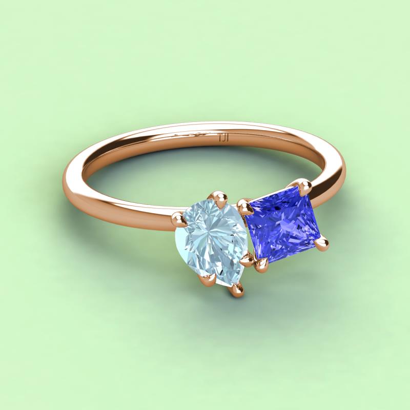 Pear Shape Aquamarine & Princess Shape Tanzanite 2.30 ctw Four Prong Womens 2 Stone Duo Engagement Ring 18K Rose Gold More Details ...