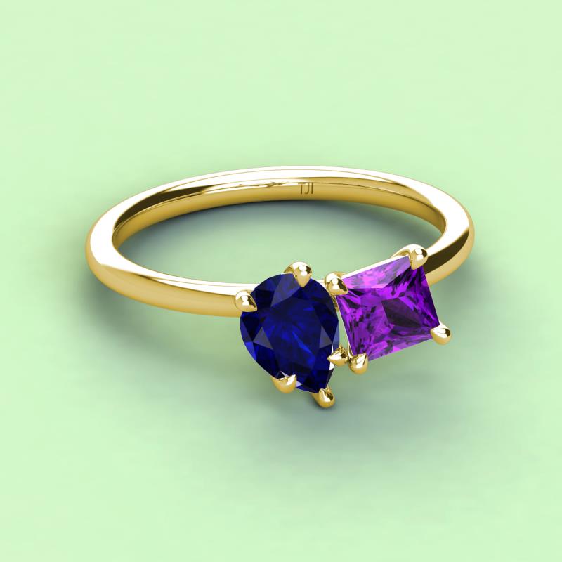 Pear Shape Blue Sapphire & Princess Shape Amethyst 2.60 ctw Four Prong Womens 2 Stone Duo Engagement Ring 10K Yellow Gold More Details ...