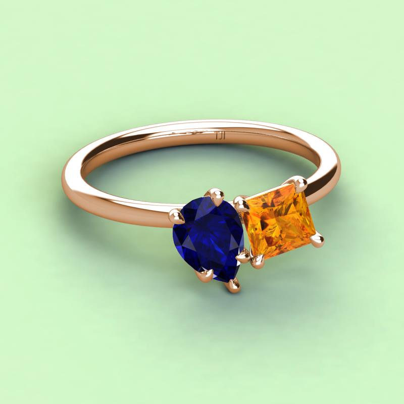 Pear Shape Blue Sapphire & Princess Shape Citrine 2.50 ctw Four Prong Womens 2 Stone Duo Engagement Ring 18K Rose Gold More Details ...