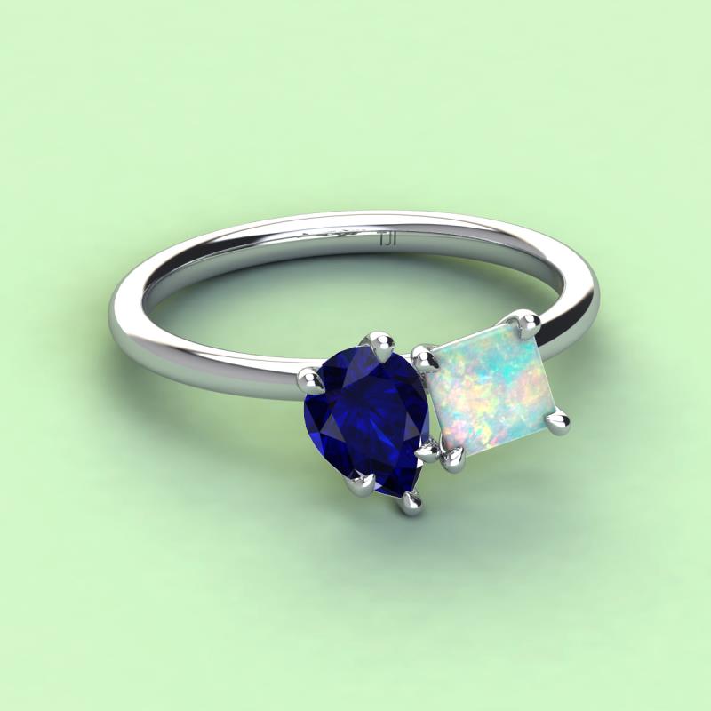 Pear Shape Blue Sapphire & Princess Shape Lab Created Opal 2.30 ctw Four Prong Womens 2 Stone Duo Engagement Ring Platinum More Details ...