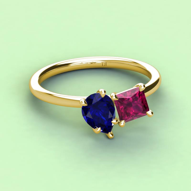Pear Shape Blue Sapphire & Princess Shape Rhodolite Garnet 2.70 ctw Four Prong Womens 2 Stone Duo Engagement Ring 18K Yellow Gold More Details ...