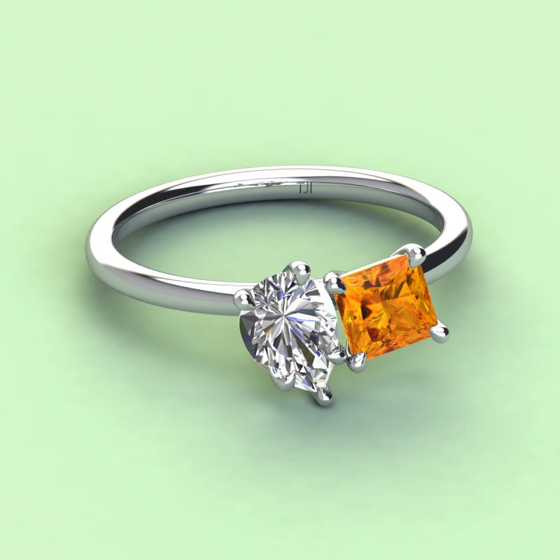 Pear Shape Certified Lab Grown Diamond & Princess Shape Citrine 2.10 ctw Four Prong Womens 2 Stone Duo Engagement Ring Platinum More Details ...