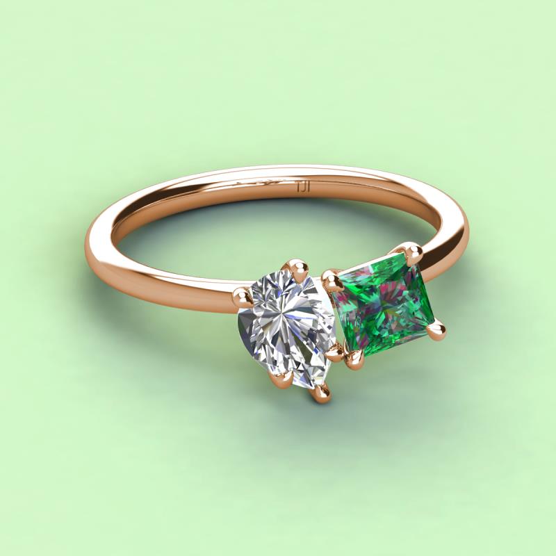 Pear Shape Certified Lab Grown Diamond & Princess Shape Lab Created Alexandrite 2.54 ctw Four Prong Womens 2 Stone Duo Engagement Ring 18K Rose Gold More Details ...