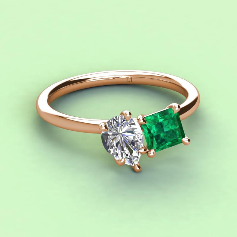 Pear Shape Certified Lab Grown Diamond & Princess Shape Lab Created Emerald 2.07 ctw Four Prong Womens 2 Stone Duo Engagement Ring 14K Rose Gold More Details ...
