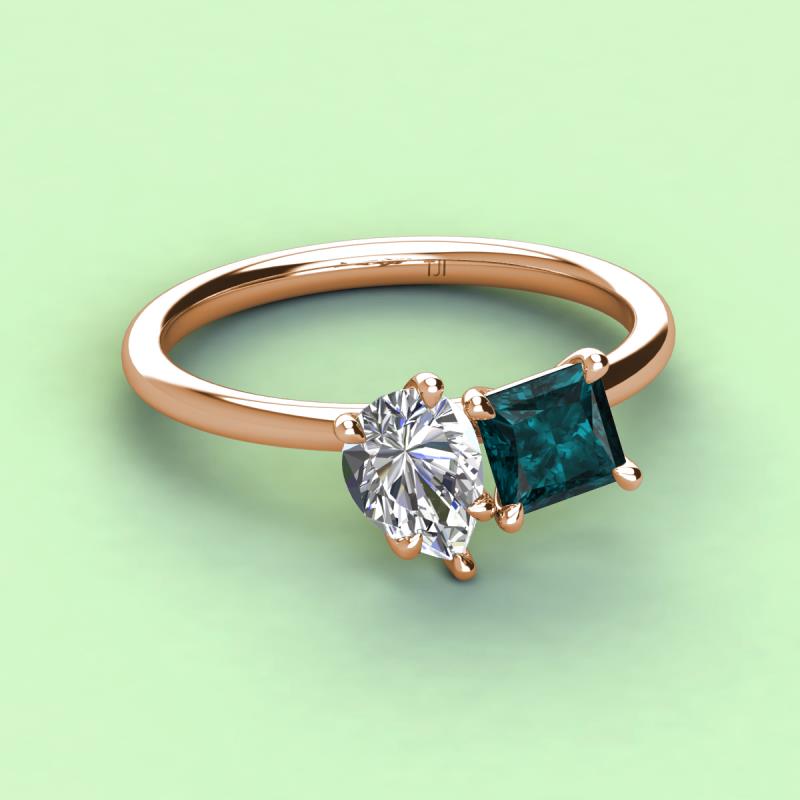 A beautiful symbol of everlasting love, this duo two-stone ring showcases a pair of Pear Shape IGI Certified Lab Grown Diamond shimmering alongside of a luminous Princess Shape London Blue Topaz crafted beautifully that represents two of you together.