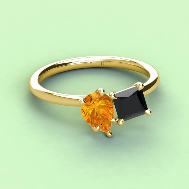 Pear Shape Citrine & Princess Shape Black Diamond 2.70 ctw Four Prong Womens 2 Stone Duo Engagement Ring 14K Yellow Gold More Details ...