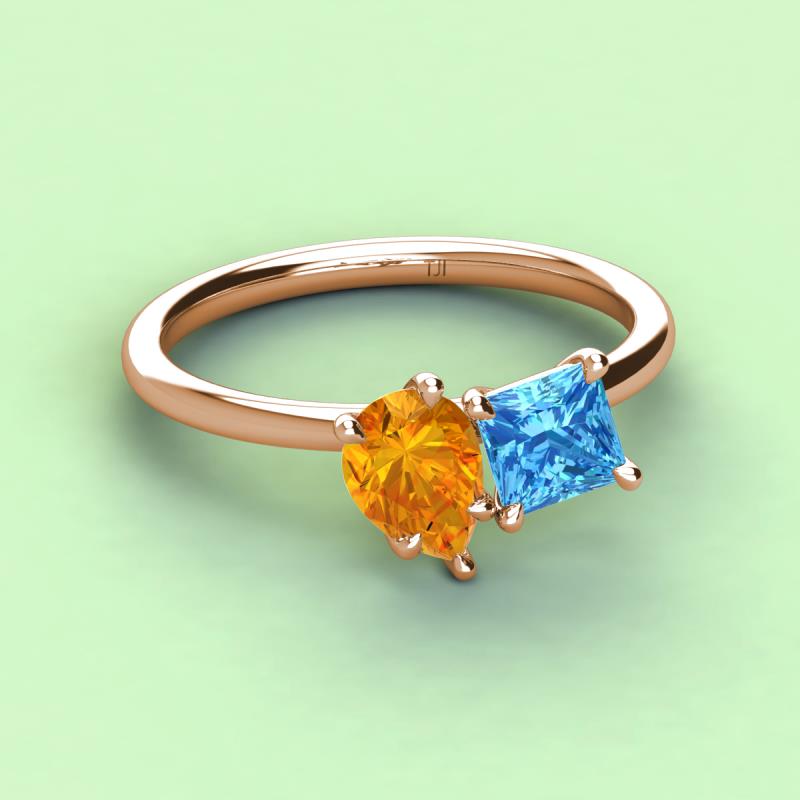 Pear Shape Citrine & Princess Shape Blue Topaz 2.60 ctw Four Prong Womens 2 Stone Duo Engagement Ring 18K Rose Gold More Details ...