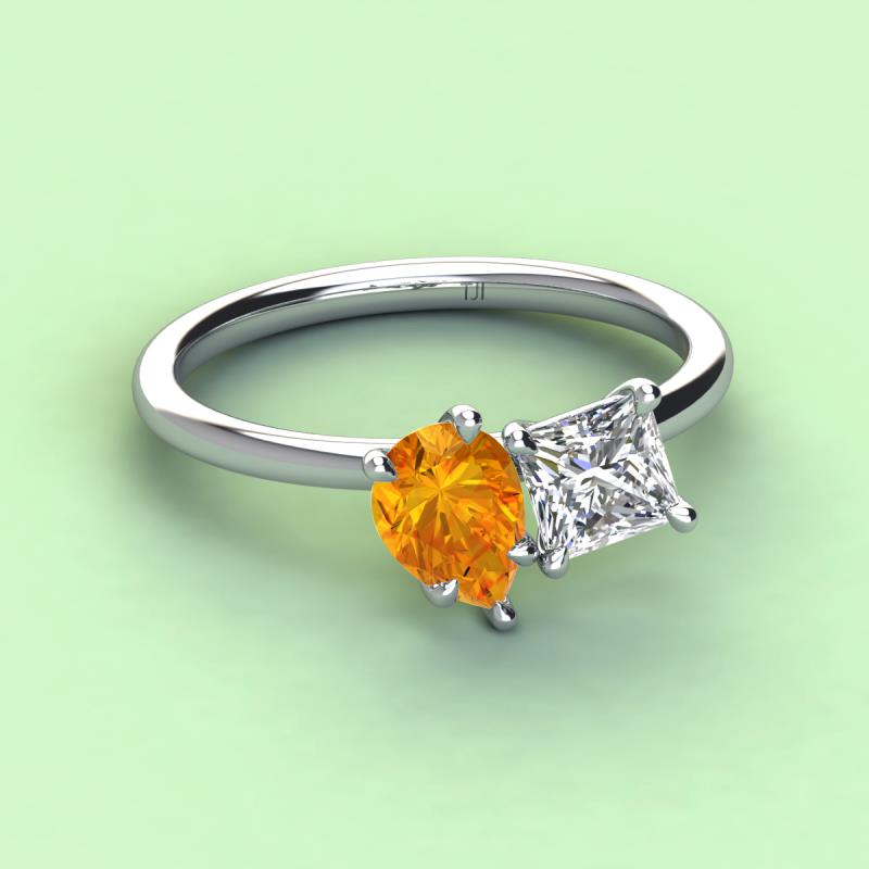 Pear Shape Citrine & Princess Shape Certified Lab Grown Diamond 2.40 ctw Four Prong Womens 2 Stone Duo Engagement Ring 18K White Gold More Details ...