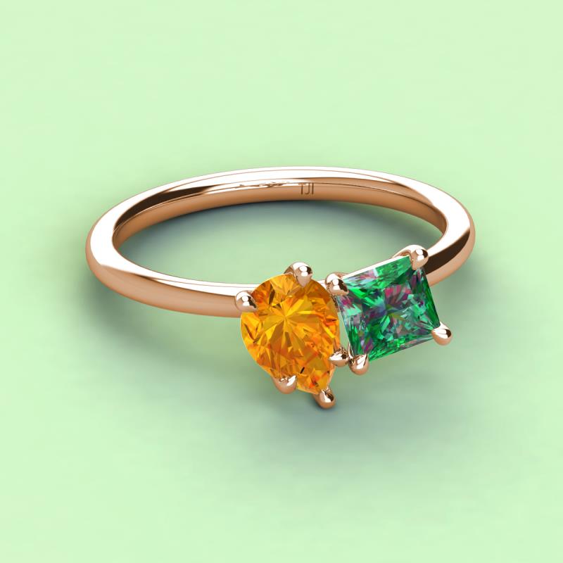 Pear Shape Citrine & Princess Shape Lab Created Alexandrite 2.64 ctw Four Prong Womens 2 Stone Duo Engagement Ring 14K Rose Gold More Details ...